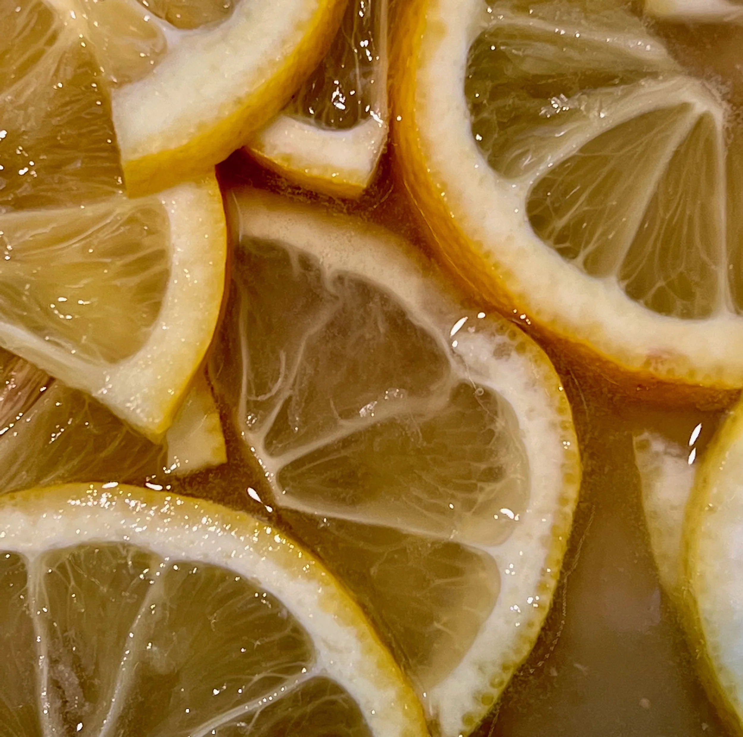 This quick preserve is like an exacto knife: you can live without it, but when you have it you will find yourself using it all the time. With a little sparkling water it adds a zesty zing to a mocktail. (The preserve, not the exacto knife, just to be clear.) Mix it with chicken stock and cornstarch to make a lemon chicken sauce. Or add it to salad dressings for a puckering kick. It’s quick and easy to make and once it’s in the fridge it keeps for about two weeks, so there’s plenty of time to find many other uses for it. The only trick is using organic lemons. Non-organic ones often have a wax on the peel that will ruin the flavour.